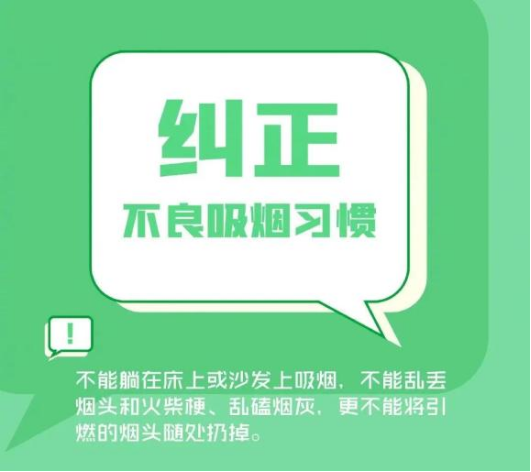 (3)不要随意吸烟。在室外禁烟地点或室内吸烟、乱扔烟头,易引发火灾事故。